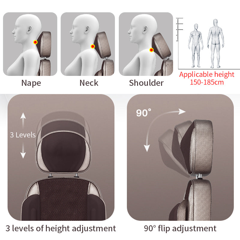 • Heating Functions: Built-in infrared heating zones for neck, back, and waist to soothe sore muscles and improve circulation.